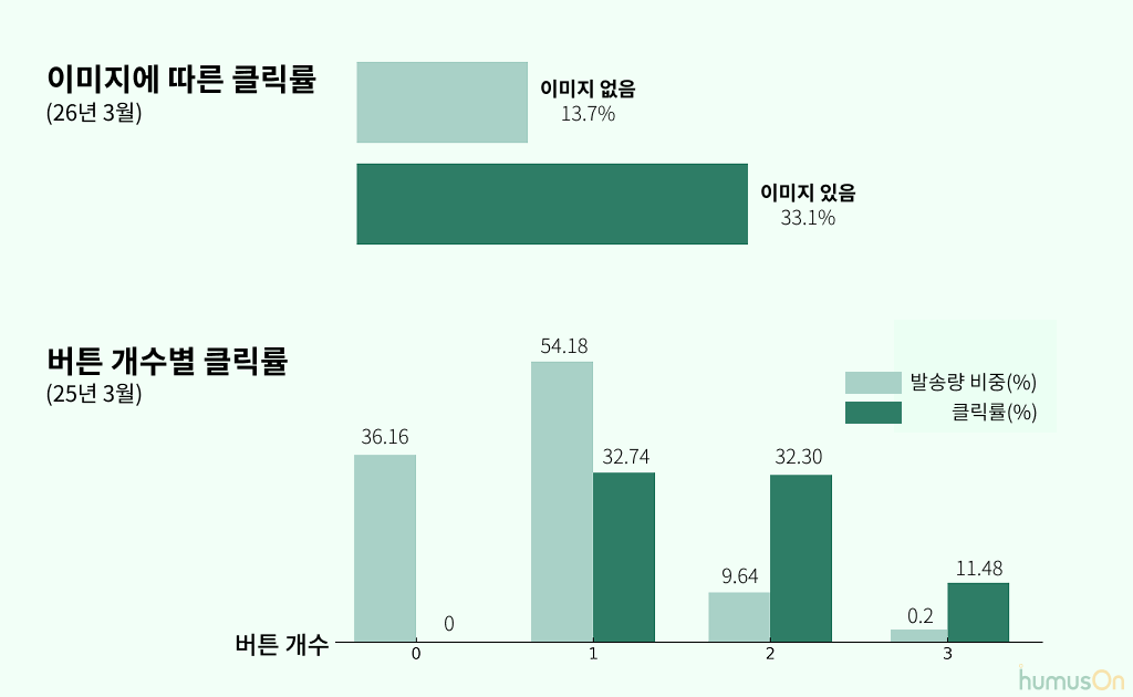 이를 확인하기 위해 카카오 공식딜러사 휴머스온을 통해 지난 3월 전송된 알림톡 메시지를 분석했습니다. 메시지 기획자와 실무자 모두에게 실용적인 기준이 되는 숫자 뒤에 숨겨진 인사이트를 소개합니다.