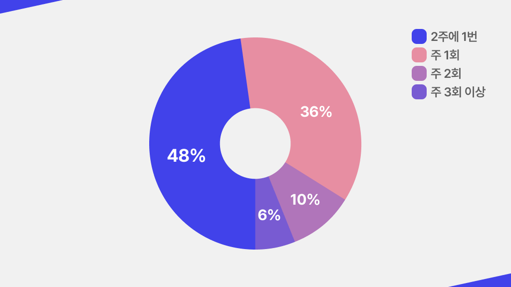 SimpleTexting 2024 SMS 마케팅 리포트에 따르면, SMS 구독자의 48%는 ‘2주에 한 번(격주)’ 메시지를 받는 것을 가장 선호했습니다. 그 뒤로는 36%가 ‘매주 1회’를 꼽았습니다. 즉, 대부분의 고객은 1~2주 간격의 소통을 이상적으로 느낀다는 뜻입니다.